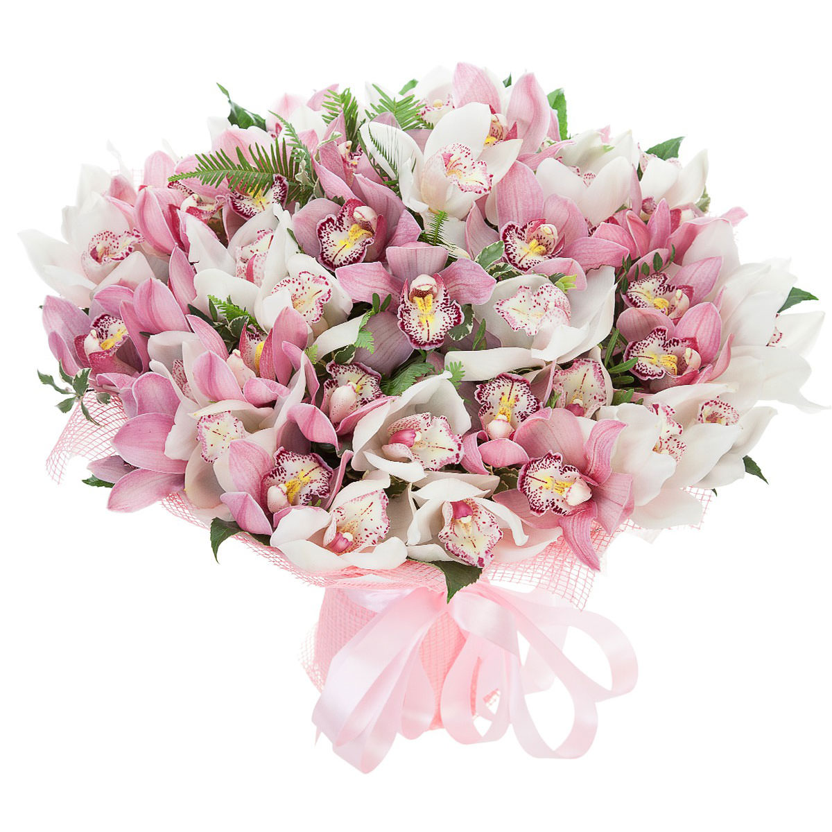 Орхидеи белые, розовые.