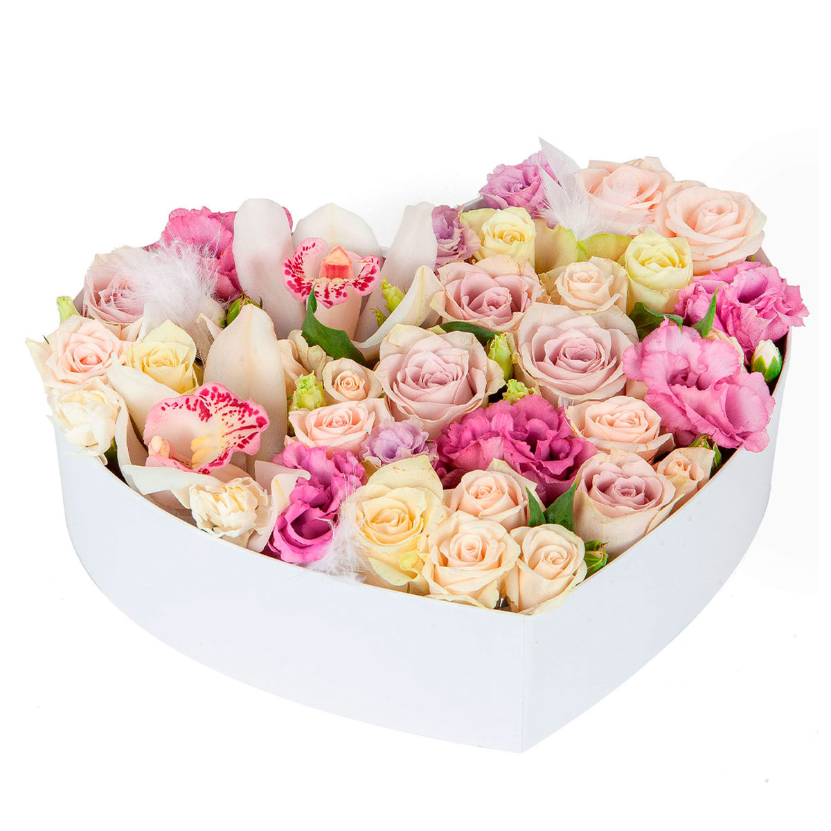 Цветы в коробке «Нежный флер» с доставкой по г Пугачёв: вы можете купить букет в интернет-салоне цветов «Флормания» по цене от 3190 руб.