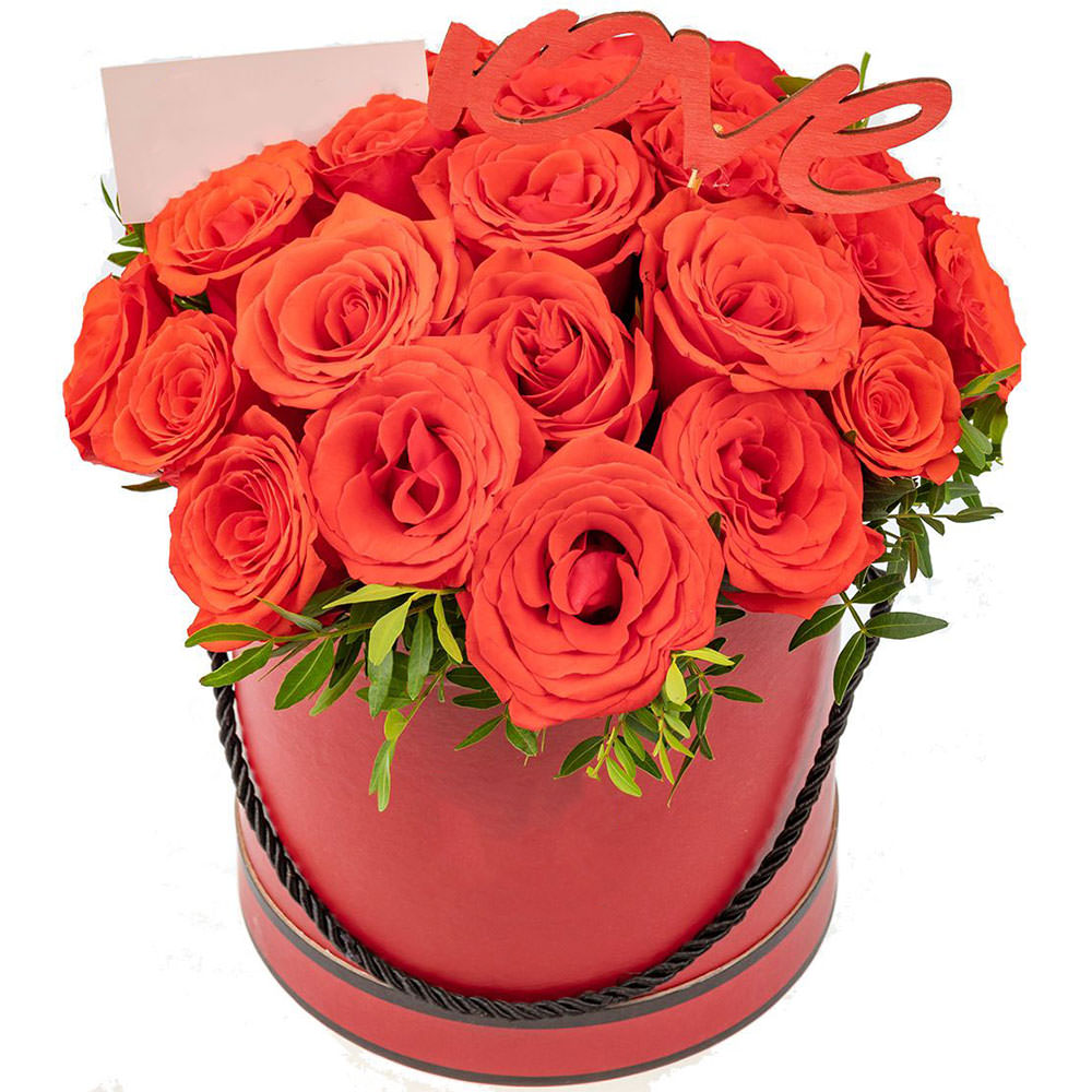 Цветы в коробке «Рубин» с доставкой по г Пугачёв: вы можете заказать букет в супермаркете цветов «Флормания» по цене от 3190 руб.