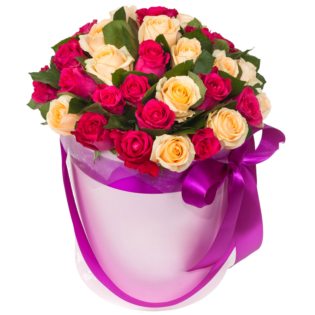 Цветы в коробке «Золотые сны» с доставкой по г Пугачёв: вы можете купить букет в супермаркете цветов «Флормания» по цене от 3190 руб.